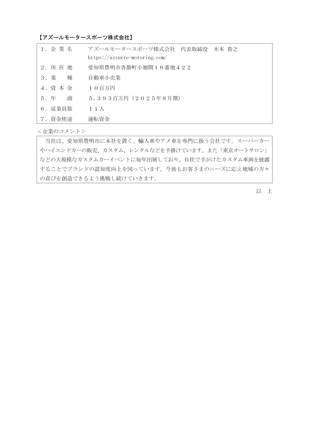 アズールモータースポーツ株式会社