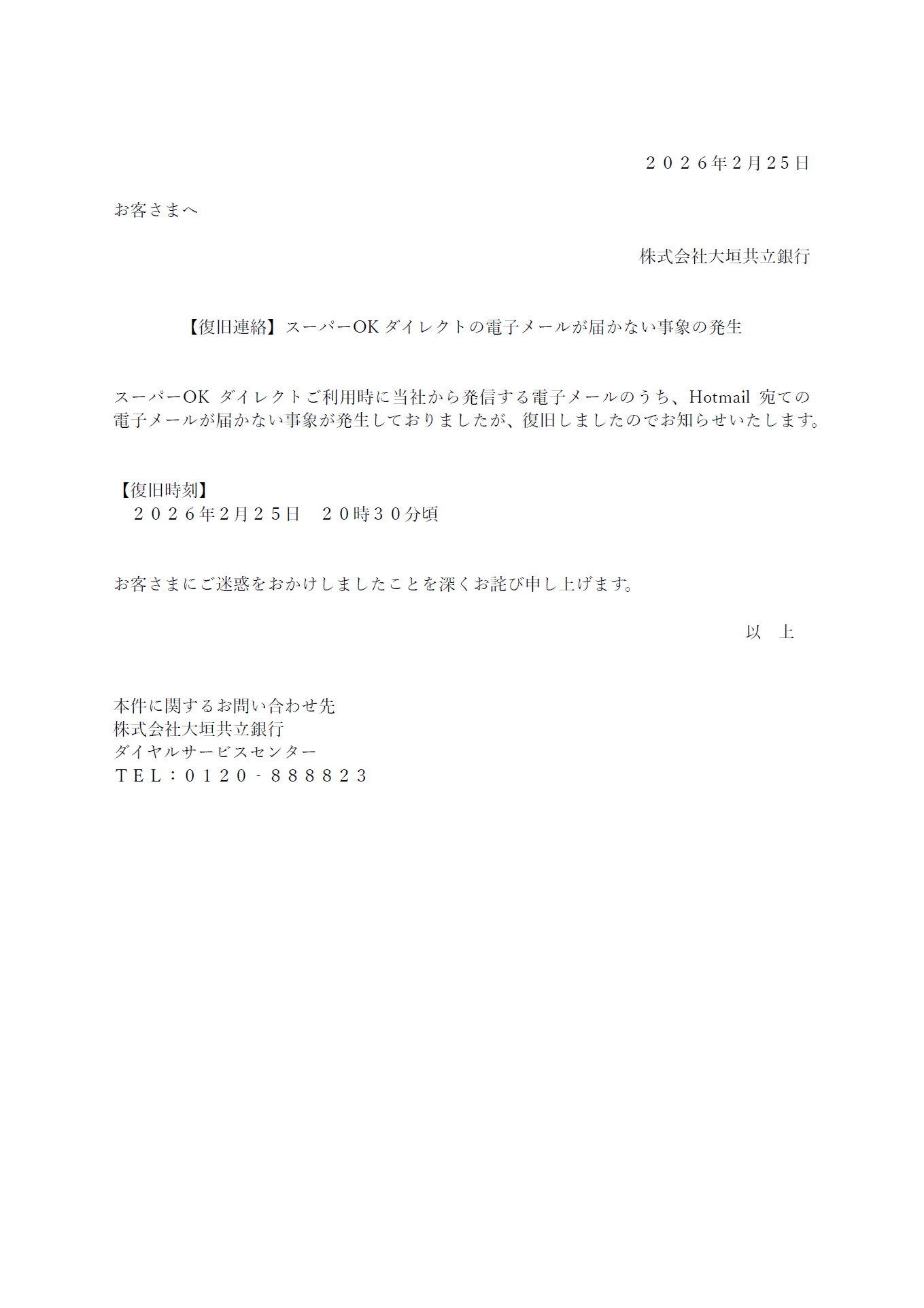 【復旧連絡】スーパーOKダイレクトの電子メールが届かない事象の発生