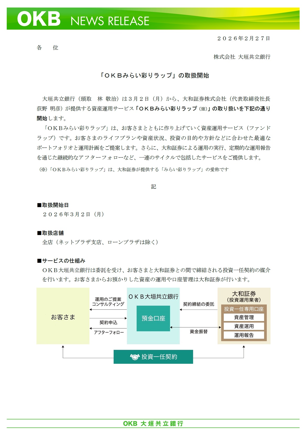 「OKBみらい彩りラップ」の取扱開始
