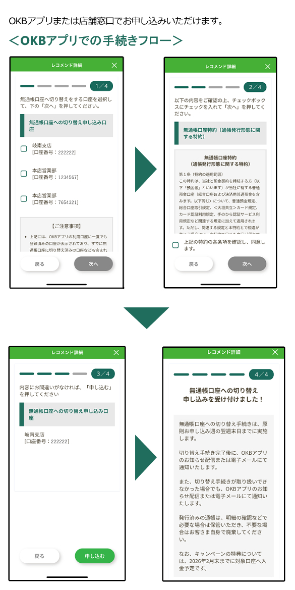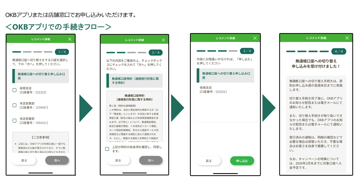 - キャンペーン期間中に、無通帳口座を新規開設、または有通帳口座から無通帳口座に切り替え手続きが完了していることが必要です