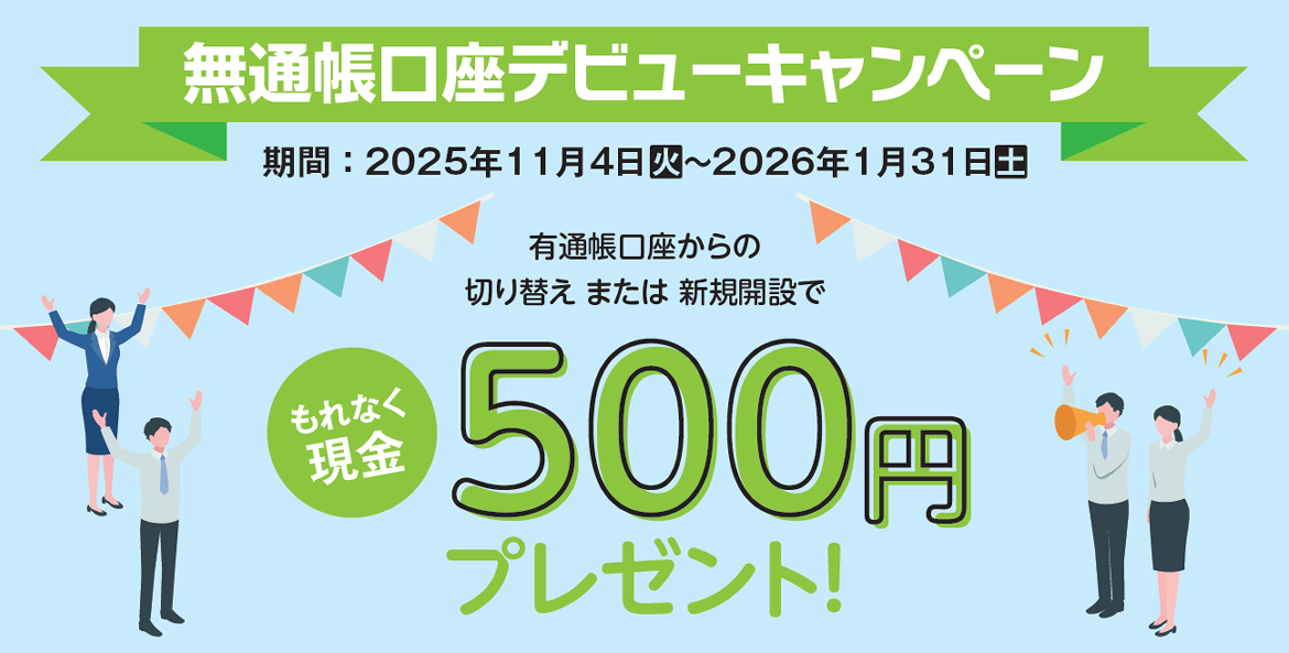 - 過去に無通帳口座への切り替えによる特典を受け取ったことがある方は、今回のキャンペーン対象外となります