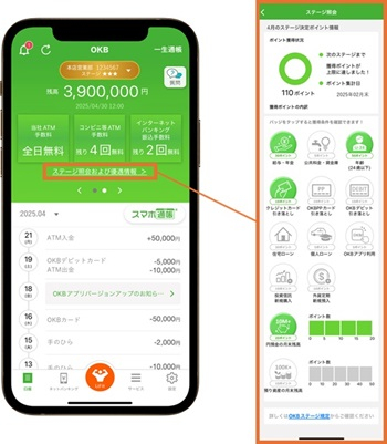 OKBアプリでは、今月のOKBステージやステージに応じた特典がひと目で確認できます。