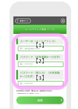 「手順:7. OKBアカウントの新規登録(1)」で、登録いただいたOKBアカウントの【1】ユーザーID(メールアドレス)【2】パスワード(半角英数 8~12文字)を入力し、「ログイン」を押します。