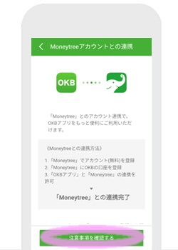 - Moneytreeと連携することで、もっと便利にOKBアプリを利用いただけます。
