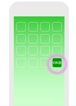 - QRコードを読み込むか、アプリストアで「OKBアプリ」を検索します。