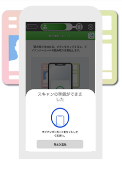 「スキャンの準備ができました」と表示されたら、スマートフォンの上部または読取位置にマイナンバーカードを接触させます。
