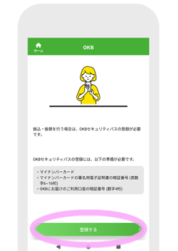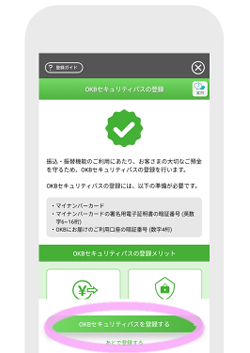 - OKBセキュリティパスを登録すると、OKBアプリの振込・振替機能も利用いただけます。