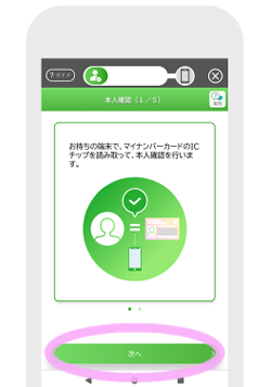 マイナンバーカードの読み取りに関する説明をお読みいただき、「次へ」を押します。