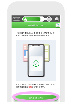 マイナンバーカードの読み取り方法を確認し、「読み取りを始める」を押します。
